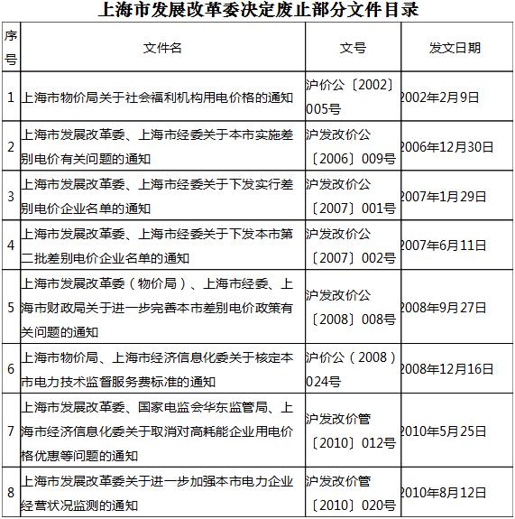 注意!上海發(fā)改委廢止8個(gè)與電價(jià)有關(guān)文件